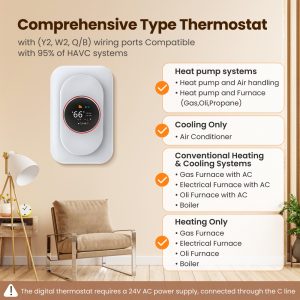 Elevate your HVAC control with the AVATTO Smart WiFi Thermostat (WT450). Also, Designed for 24V HVAC systems, this thermostat offers versatile compatibility, intuitive smart home integration, and energy-saving modes. So, the comprehensive package includes a C-wire converter, base, and backplate, ensuring a seamless installation process. Also, control your home’s climate remotely with the Smart Life or Tuya Smart App. And enjoy the convenience of voice commands through Alexa and Google Assistant. Also, with an informative display, smart programmability, and an aesthetic design, the WT450 delivers precise temperature control with a touch of sophistication. Trust AVATTO for a smarter, more comfortable living experience.