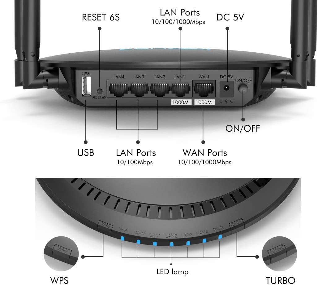Routeur Wi-Fi Gigabit intelligent WAVLINK AC1200-routeur Internet sans fil MU-MIMO double bande avec antennes 4X pour jeu en ligne et vidéo HD, TouchLink breveté, couverture longue portée plus fiable