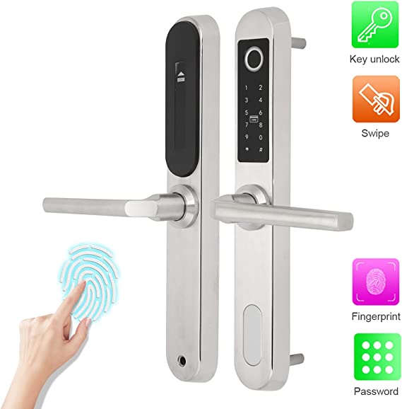 Serrure de Porte Empreinte Digitale, 4 en 1 Serrure Biométrique Empreinte Digitale/Carte/Mot de Passe/Clé Déverrouille Serrure, Serrure de Porte Intelligente de Sécurité Électronique