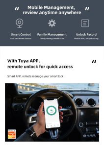 - Tuya App remote unlocking requires a Tuya BLE hub; unlock remotely anytime, anywhere.