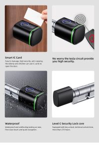 Elevate your home security with the AVATTO Smart Door Lock (SDL-S1). This keyless smart cylinder offers versatile unlocking options, including fingerprint recognition, IC card access, Tuya app control, and traditional key entry. With easy installation and a mobile management system, enjoy secure and convenient access control. The fast recognition speed and energy-efficient design make it a reliable choice. Utilize the Tuya BLE gateway for remote unlocking, ensuring quick access from anywhere. Upgrade to the Smart Door Lock (SDL-S1) for a seamless blend of advanced technology and robust security.