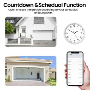 - Countdown & Schedule Function: Open or close the garage according to your schedules or countdown.