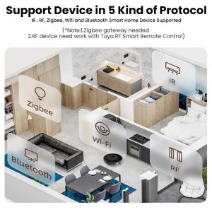 - Support Five Kinds of Device Control: Requires cooperation with a gateway (RF remote control) to control Bluetooth and Zigbee devices (RF devices).