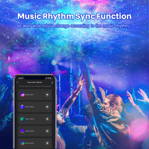 - Music Rhythm Sync Function (Only for N-SP01): With a built-in music collection microphone, the SP01 has six music modes that sync laser and nebula effects to the rhythm of different music types. The sensitivity of the microphone is adjustable for a customized experience.