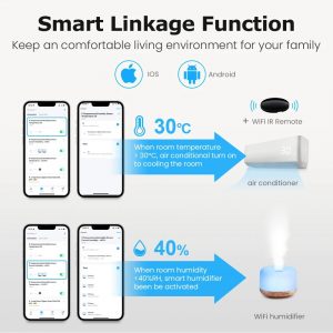 Upgrade your home climate control with the AVATTO Smart Temperature Humidity Sensor (WSH01). Also, Switch effortlessly between ℃ and F measuring units via the app and monitor real-time temperature and humidity remotely. Enjoy voice control through Amazon Alexa and Google Home for instant information access. The WSH01 also offers smart linkage with home appliances, ensuring automatic activation based on preset conditions. Share this sensor with family members using the family share function, creating a collaborative and intelligent home environment. Trust in the accuracy and reliability of this WiFi-enabled sensor for optimal comfort. Choose the AVATTO Smart Temperature Humidity Sensor (WSH01) for a smarter, connected living space.
