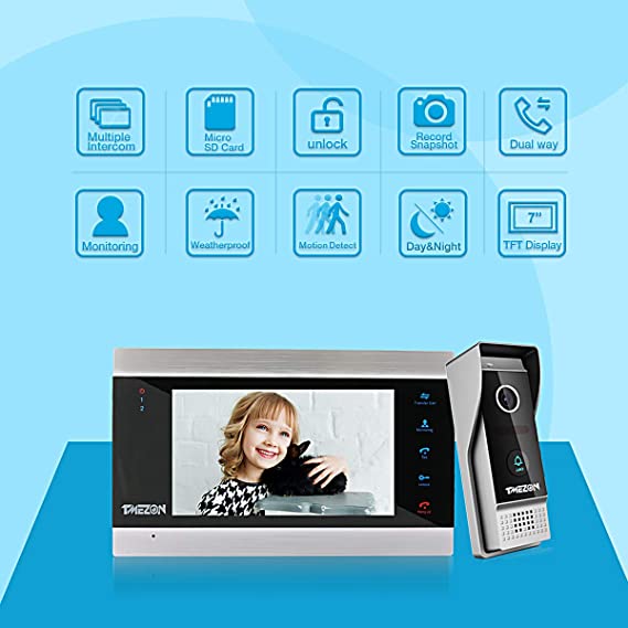 Moniteur avec Sonnette de Caméra Filaire Vision Nocturne,Imperméable,Audio bidirectionnelle,Enregistrement/Instantané