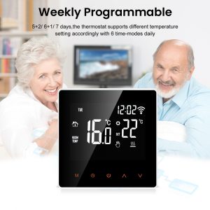 - Weekly Programmable: So, enjoy flexible scheduling with options for 5+2, 6+1, or 7-day weekly programming. Set different temperatures for up to 6 time periods on weekdays and 2 on weekends.