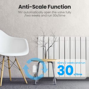 - Linkage Function: Also, Link the TRV with other smart appliances in your home, enabling various smart themes like leave home mode, back home mode, dinner mode, and sleeping mode.